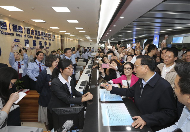 總理來了!由象嶼集團(tuán)開發(fā)運(yùn)營(yíng)的兩岸貿(mào)易中心火了!李克強(qiáng)4月22日在福建自貿(mào)區(qū)廈門片區(qū)象嶼綜合服務(wù)大廳了解簡(jiǎn)政放權(quán)和商事制度改革等情況。總理說,自貿(mào)區(qū)不是政策洼地而是改革高地,要大膽闖勇于創(chuàng)。昨天你們掛牌,今天我來為你們助力!