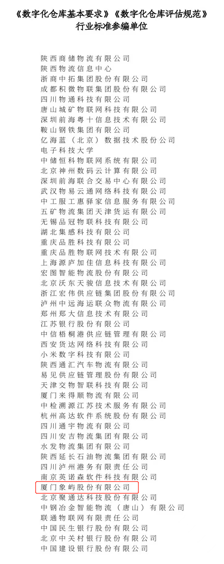 數(shù)智引領(lǐng)!象嶼股份參與編寫(xiě)的數(shù)字化倉(cāng)庫(kù)行業(yè)標(biāo)準(zhǔn)獲國(guó)家發(fā)改委批準(zhǔn)發(fā)布